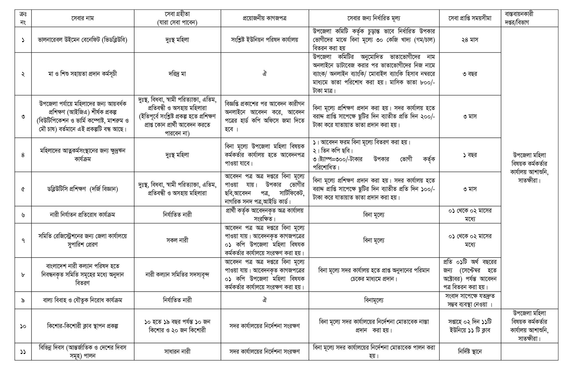 কী সেবা কিভাবে পাবেন